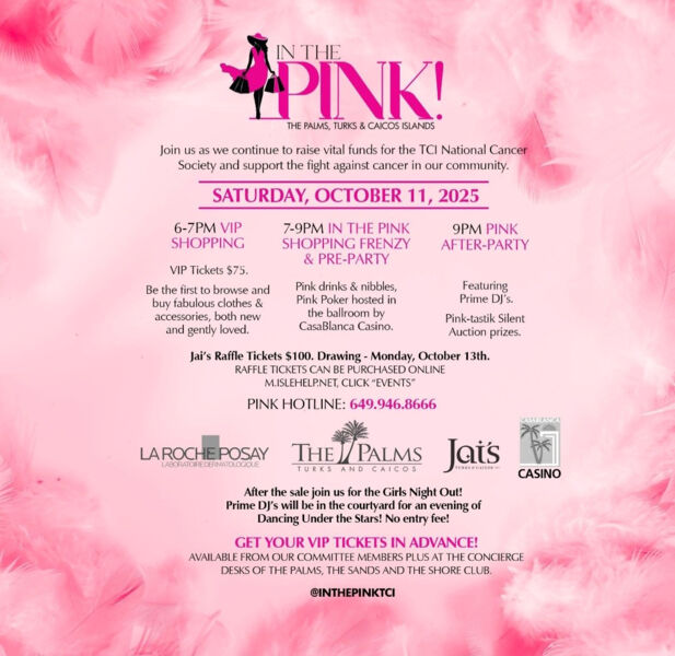 In the Pink is an annual fundraiser and social shopping event held at the luxurious Palms Resort in Grace Bay. The event is very popular with the resident community and often raises well over $50,000 for the National Cancer Society.