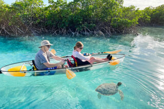 Clear and glass-bottom kayaks have become very popular in the Turks and Caicos, as they offer an unobstructed view into the crystal-clear water below where interesting marine life can be seen. Both guided clear-bottom kayak eco-tours and unguided rentals are offered at a few locations on Providenciales.